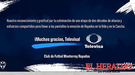 De manera oficial los Rayados anunciaron que dejarán a Televisa, luego de que durante más de dos décadas sus partidos fueron transmitidos a través de la señal de la familia Azcárraga; ahora los albiazules podrán verse, como lo adelantó Mediotiempo, por la señal de Fox Sports.