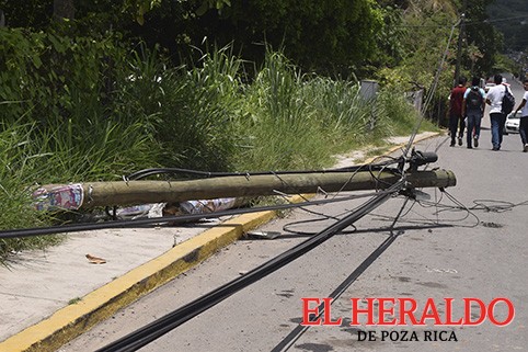 Peligro por poste de luz derribado