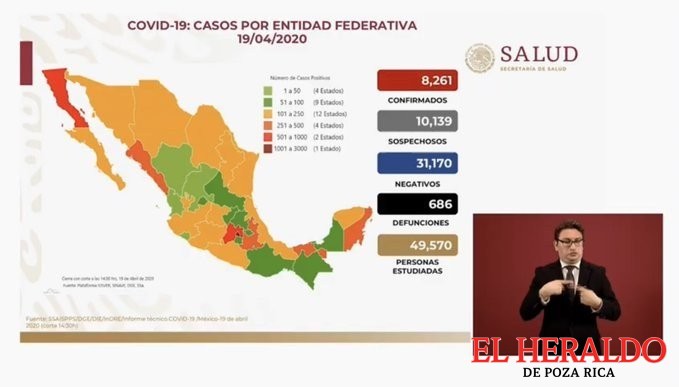 La Secretaría de salud dio a conocer que hasta ayer domingo se reportaron 686 muertos por complicaciones con el Covid-19 y 8 mil 261 contagios en el país.