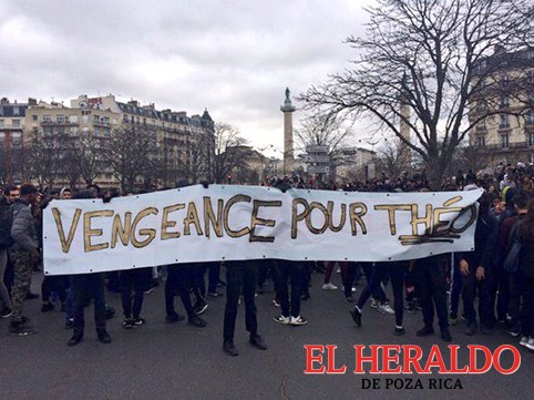 Los manifestantes protestaron por el caso de violencia policial contra el joven Theo, de 21 años, al que un grupo de agentes agredió hace dos semanas violentamente durante una detención y lo sodomizó con una macana.