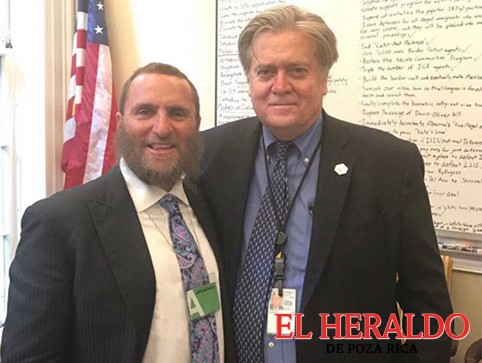 El rabino Shmuley Boteach se fotografío junto a Bannon en la residencia presidencial y decidió compartir la experiencia en la red social Twitter, pero el problema fue que las imágenes delataban frases escritas en un pizarrón que se encontraba al fondo.