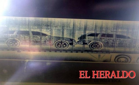 Con tecnología no intrusiva para la revisión de vehículos, se detectó, a través de rayos x, las tres camionetas dentro de la caja del tráiler.