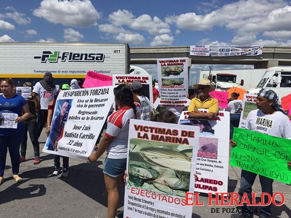 Benita Espinoza López y Misael Flores, dos de los más de 250 manifestantes, señalaron que están pidiendo el retiro de los ilegales retenes de la Semar, que el personal de esta dependencia, no utilice vehículos particulares para realizar secuestros y el regreso de sus familiares, que a la fecha suman casi medio centenar de desaparecidos.