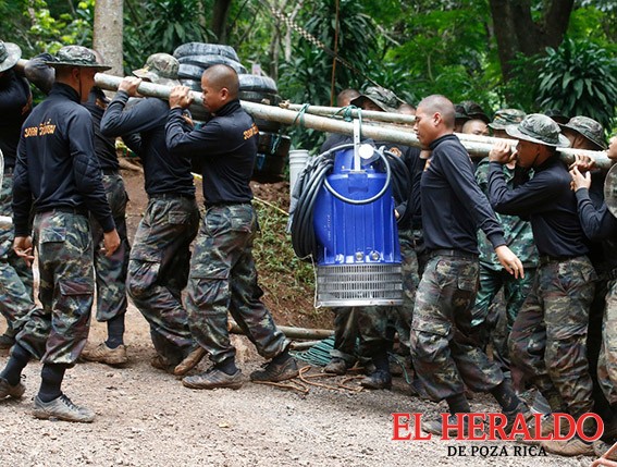 Las autoridades tratan de bombear el agua de la caverna inundada donde 12 menores y su entrenador de futbol han estado atrapados desde el 23 de junio.