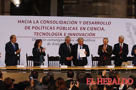 La entrega del documento “Hacia la Consolidación y Desarrollo de Políticas Públicas en Ciencia, Tecnología e Innovación. Objetivo estratégico para una política de Estado 2018-2024” se celebró en el Palacio de Minería, donde se dieron cita rectores de universidades y centros de investigación, presidentes de académicas de ciencias y empresarios como Carlos Slim, presidente de Grupo Carso. López Obrador fue recibido a las seis de la tarde con un aplauso de pie por los científicos.