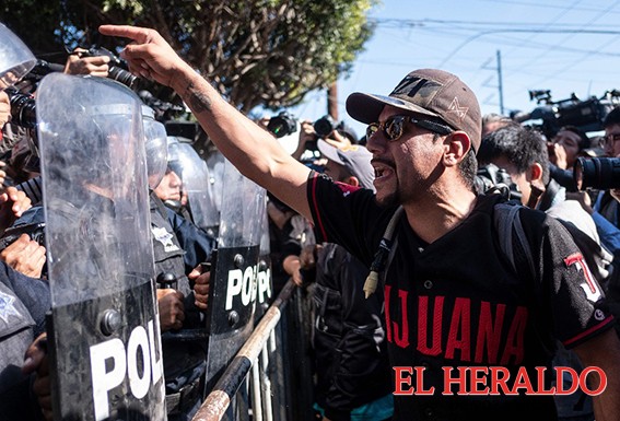 Al menos 200 tijuanenses, enarbolando la bandera nacional y gritos de "México, México" exigieron que se expulse a quienes llaman “invasores”.