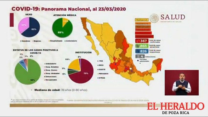 El virus causante del coronavirus Covid-19 está presente en 367 personas en México, 51 más respecto a las 316 del pasado domingo. Se sumaron dos fallecimientos para llegar a 4, de dos personas que vivían en Jalisco y Ciudad de México, informó Hugo López-Gatell, subsecretario de Prevención y Promoción de la Salud.