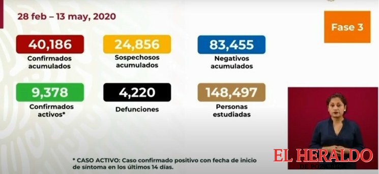 A dos semanas y tres días de que concluya la Jornada Nacional de Sana Distancia, el número de casos confirmados llegó a 40 mil 186, lo que equivale a un aumento de mil 862 respecto del día anterior. También se reportan 4 mil 220 fallecimientos, es decir 294 más que el pasado martes. La tendencia de la curva sigue en un incremento acelerado.