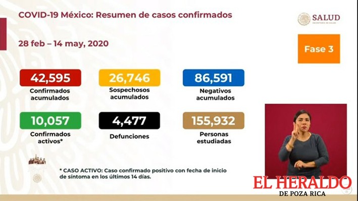 El reporte sobre el coronavirus SARS-CoV-2 informa que en las pasadas 24 horas se sumaron dos mil 409 casos confirmados. Es el primer día que se supera la barrera de los dos millares, con lo que el registro llegó a 42 mil 595 al día de hoy. También se agregaron 257 fallecimientos para un acumulado de 4 mil 477.