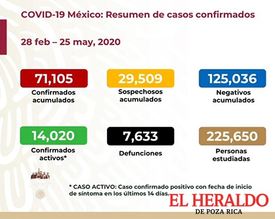 José Luis Alomía Zegarra, director general de Epidemiología, informó que México sumó 71 mil 105 casos positivos de Covid-19, para la noche de este lunes, 2 mil 485 más que el domingo, y 7 mil 633 muertes a causa del virus.