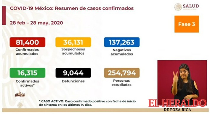 A unas horas de que concluya la Jornada Nacional de Sana Distancia, el día sábado 30 de mayo, se confirmaron 3 mil 377 casos de Covid-19, con lo que el registro llegó a 81 mil 400. De igual manera, se agregaron 447 decesos por la enfermedad. La cifra acumulada se ubicó en 9 mil 44 defunciones hasta ahora.