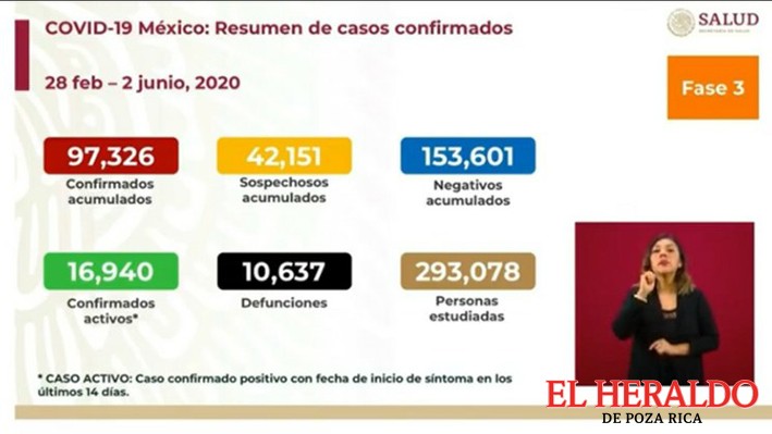 En las últimas 24 horas se sumaron 3 mil 891 nuevas confirmaciones de Covid-19, para un acumulado de 97 mil 326 al día martes. En esta ocasión se agregaron sólo 470 decesos, con lo que el registro llegó a 10 mil 637.