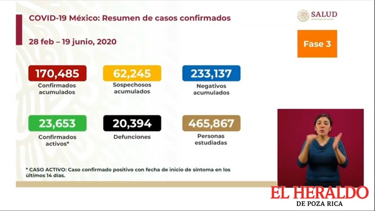 A tres semanas del inicio de la nueva normalidad, la transmisión del Covid-19 en México mantiene una tendencia elevada. El registro acumulado de casos llegó a los 170 mil 485, lo que representa 5 mil 30 nuevos casos notificados en las últimas 24 horas, mientras que los fallecimientos son ya 20 mil 394, con lo que se suman 647 nuevas notificaciones al reporte nacional de decesos confirmados por laboratorio.