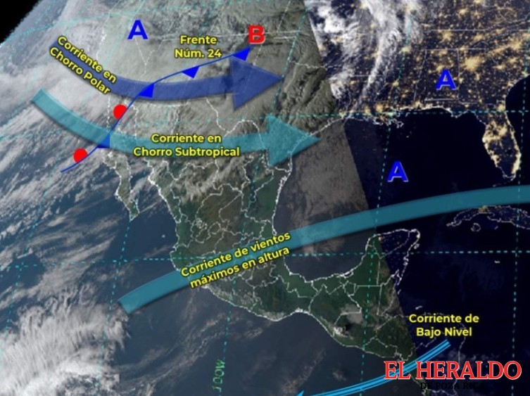 De acuerdo con el comunicado del organismo dependiente de la Comisión Nacional del Agua (Conagua), el frente frío número 24 se extenderá sobre el norte de la República Mexicana, en interacción con la corriente en chorro polar y subtropical, además de una línea seca en el noreste del país, generarán lluvias puntuales fuertes en Baja California, Sonora y Chihuahua, asimismo chubascos en Baja California Sur, rachas fuertes de viento de hasta 90 km/h con tolvaneras en entidades del noroeste y norte del territorio nacional y de hasta 70 km/h con tolvaneras en Coahuila, Zacatecas y San Luis Potosí