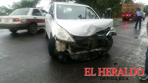 Aparatoso accidente sobre la carretera Chote-Coatzintla deja como saldo cuantiosos daños materiales, cuando el conductor de una unidad compacta perdió el control, chocando contra un poste de madera, para finalmente impactarse contra unos matorrales.