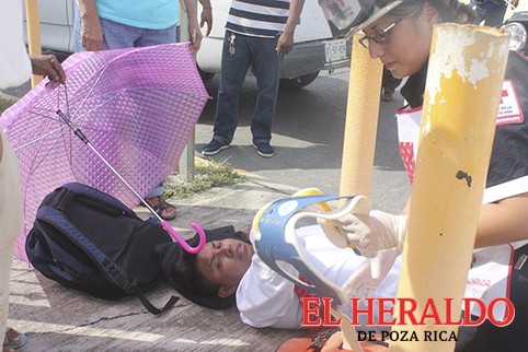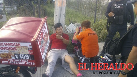 El accidente se registró al filo de las seis de la tarde en el carril que da a la avenida Lázaro Cárdenas, justo frente al ‘Motel Venecia’, socorristas de Escuadrón Nacional de Emergencias valoraron a Jonathan Alonso, quien solo sufrió golpes contusos.