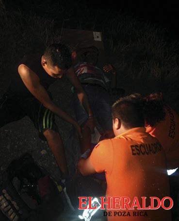 Luis Ángel Rivera Hernández, de 22 años de edad, tuvo que ser auxiliado por socorristas del Escuadrón Nacional de Rescate luego de haber derrapado en su motocicleta sobre la carretera Poza Rica-Papantla.