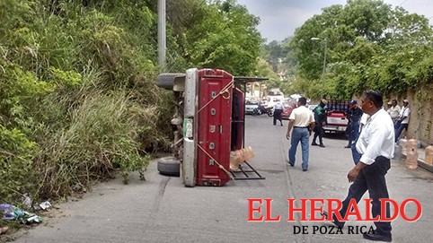 Se quedó sin frenos y vuelca camioneta