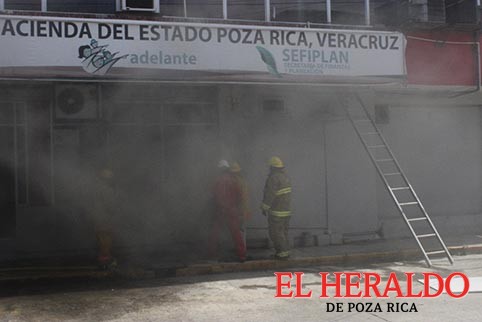 Los bomberos en cuestión de minutos realizaron los trabajos para ventilar la oficina; también localizaron la fuente del incendio.