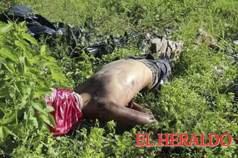 Uno de ellos vestía un pantalón azul de mezclilla, sin playera, quien presentaba visibles huellas de tortura y cubierto del rostro con una bolsa de color negro; mientras que el otro se encontraba desnudo, maniatado y con una bolsa de color rojo en el rostro.