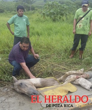 Personal de Protección Civil Municipal se trasladó al lugar para auxiliar al dueño del animal, quien con apoyo de una máquina logró sacar al equino, desafortunadamente, el tiempo que pasó atorado no lo dejó ponerse de pie.
