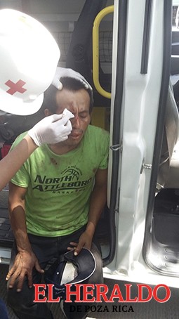 Tremenda heridas en el rostro y cráneo presentó un sujeto que fue atendido por socorristas de la Cruz Roja en la colonia La Ceiba, el sujeto asegura que se cayó, pero todo parece indicar que recibió tremenda golpiza.