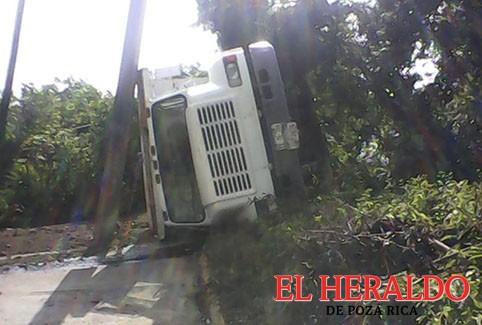 Un pesado camión de volteo, presuntamente propiedad del director de Obras Públicas del municipio, Raúl González Flores, volcó aparatosamente cuando transportaba varias toneladas de grava hacia el cerro de El Mirador, en la colonia Manantiales, el conductor sorprendentemente salvó la vida.