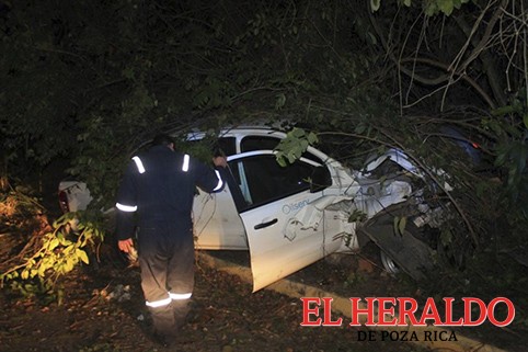Aparatoso accidente sobre la carretera Chote-Coatzintla deja como saldo cuantiosos daños materiales, cuando el conductor de una unidad compacta perdió el control, chocando contra un poste de madera, para finalmente impactarse contra unos matorrales.