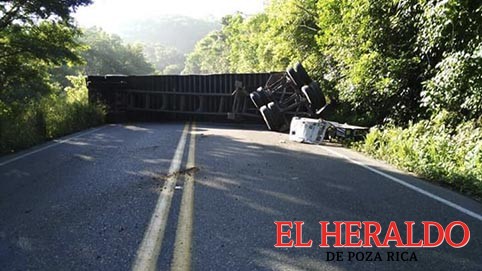 El percance provocó que la circulación quedara obstaculizada en ambos carriles. Se trata de un tráiler de doble remolque, cuyo conductor al llegar a una cerrada curva perdió el control y terminó volcando, pese a lo aparatoso del percance, solo se registraron daños materiales. El operador del tráiler salió por su propio pie, con algunos golpes y huyó del lugar.