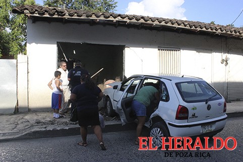 -Un auto se estrelló y tumbó la pared de una casa luego de ser chocado por una camioneta
