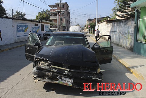 El siniestro se registró en la esquina de la prolongación Papantla y 15 de Septiembre, socorristas de URIT llegaron al lugar para auxiliar a la copilo del auto tipo Cutlass la cual se identificó como Amalia Calva Cruz de 44 años de edad y con domicilio calle Eduardo Quiroz, de la colonia Prensa Nacional.