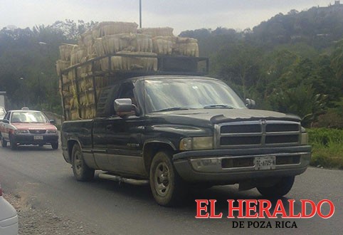 Los hechos se registraron en el camino alterno que conecta a la comunidad de Adolfo Ruiz Cortines, antes El Aguacate, camino por donde circulaba el vehículo cargado con más de dos toneladas de hoja de totomoxtle.