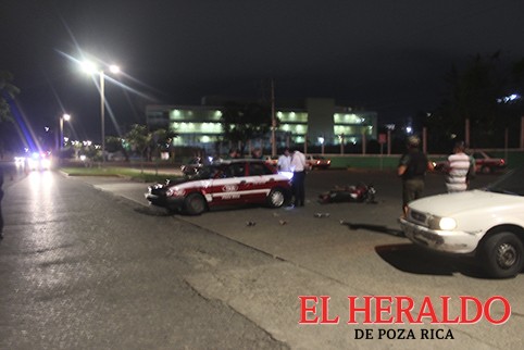 La madrugada del pasado martes un motociclista sufrió severas lesiones al impactar su “caballo de acero” contra una unidad de alquiler en el entronque de la carretera al Parque de las Américas y el bulevar Poza Rica.