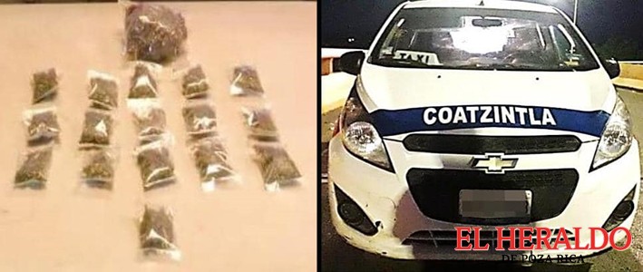 En Coatzintla, por presuntos delitos contra la salud fue detenido Miguel Ángel “N”; asegurándole 16 dosis y 100 gramos de marihuana, así como un vehículo Chevrolet Spark, modalidad taxi, placas A117XEB y número económico 256.