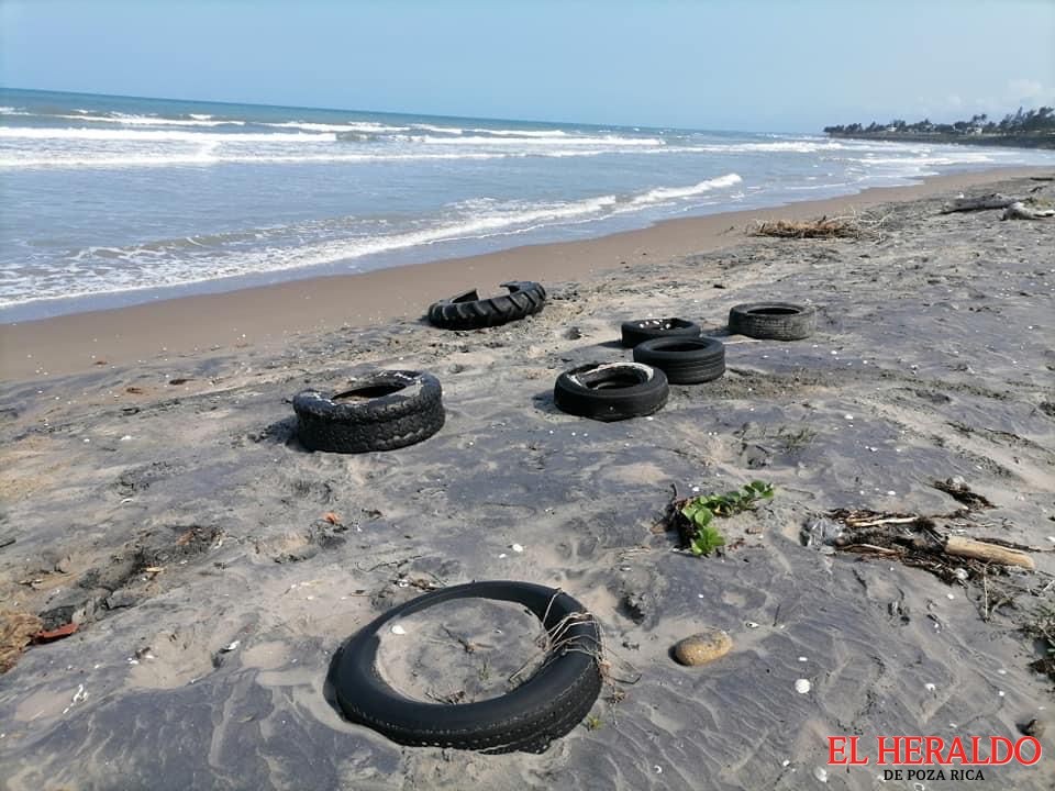 Mar arroja decenas de llantas a la playa