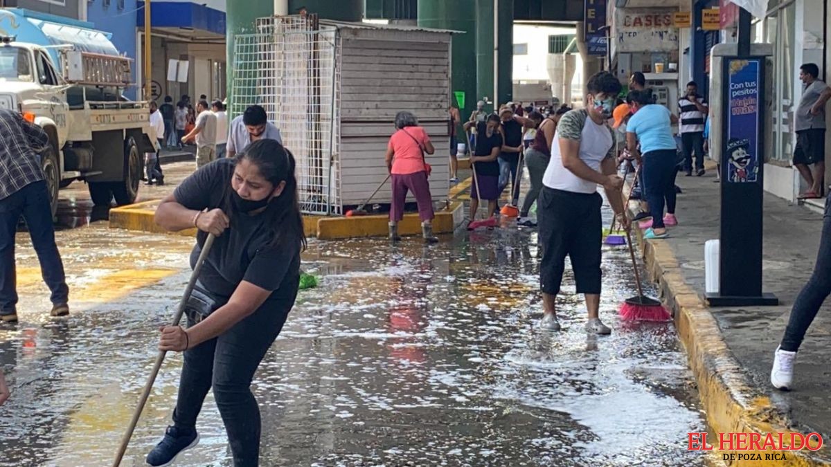Comerciantes limpian el centro de la ciudad