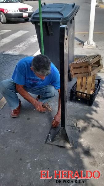 Debido a los malos trabajos de instalación de los contenedores de basura que fueran donados a Poza Rica por la Sedema, personal de la Dirección de Limpia Pública ha tenido que proceder a la sustitución del sistema de anclaje, a fin de que no puedan ser removidos con facilidad.