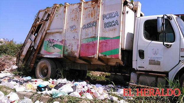 -En la parte trasera se encuentran desde arbolitos navideños, todo tipo de basura, camiones de limpia pública e incluso unidades de la Policía Estatal completamente abandonadas