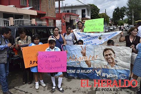 Padres de familia y maestros de la escuela primaria Maximino Pérez, que se encuentra en la colonia Progreso, de esta ciudad, demandan el respaldo del gobernador, Miguel Ángel Yunes Linares, para la reconstrucción del plantel.