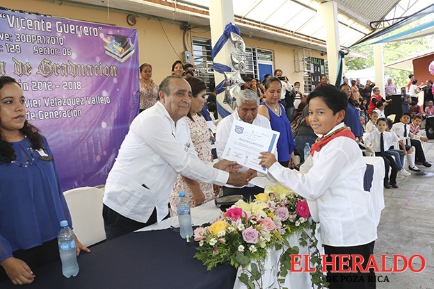 “La educación es el vestido de gala para asistir a la fiesta de la vida”, frase que pronunció el alcalde de Poza Rica, Francisco Javier Velázquez Vallejo, al apadrinar a la generación 2012-2018, de la escuela primaria Vicente Guerrero, que celebró la ceremonia de graduación de sus 75 alumnos de sexto grado.