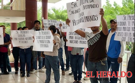 Un grupo de ciudadanos que desde hace más de un año invaden el espacio que han denominado “El Paraíso” acudieron al palacio municipal donde pidieron el apoyo de autoridades municipales para que se realice la regularización de los espacios en donde han edificado sus viviendas con madera, laminas, plásticos y cartón.