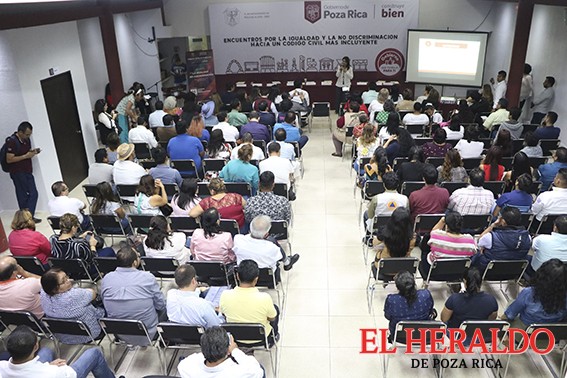 A nombre del alcalde, Francisco Javier Velázquez Vallejo, la síndica, María del Carmen Carballo Vicencio, dio la bienvenida al Encuentro por la Igualdad y la No Discriminación, realizado en el auditorio Rafael Hernández Ochoa de Poza Rica, por integrantes del Congreso del Estado, a fin de ampliar y fortalecer el conocimiento, el análisis y la difusión de la Iniciativa de Decreto que reforma, deroga, y adiciona diversas disposiciones del Código Civil para el Estado de Veracruz, y que conllevará modificaciones de 52 artículos del Código Civil estatal que data de 1932 y que, a juicio de especialistas en Derecho, magistrados, magistradas, diputadas y diputados, personas expertas en Derechos Humanos, es un instrumento jurídico poco útil y ya superado por las demandas y necesidades de la sociedad veracruzana, por lo que las reformas a fondo, son urgentes e indispensables.