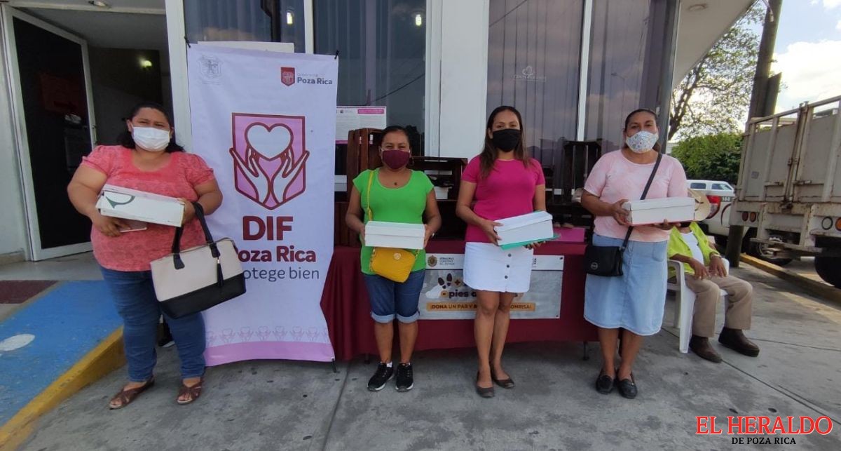 Poza Rica, Ver.- El Programa “Más Zapatos, Menos Pies Descalzos”, implementado por el Sistema Municipal para el Desarrollo Integral de la Familia (DIF) presidido por la Señora María de la Luz Straffon de Velázquez, llegó a la colonia Sector Popular de esta ciudad, en donde madres de familia y estudiantes de la escuela Primaria Sor Juana Inés de la Cruz fueron beneficiadas con zapatos nuevos para su uso personal.